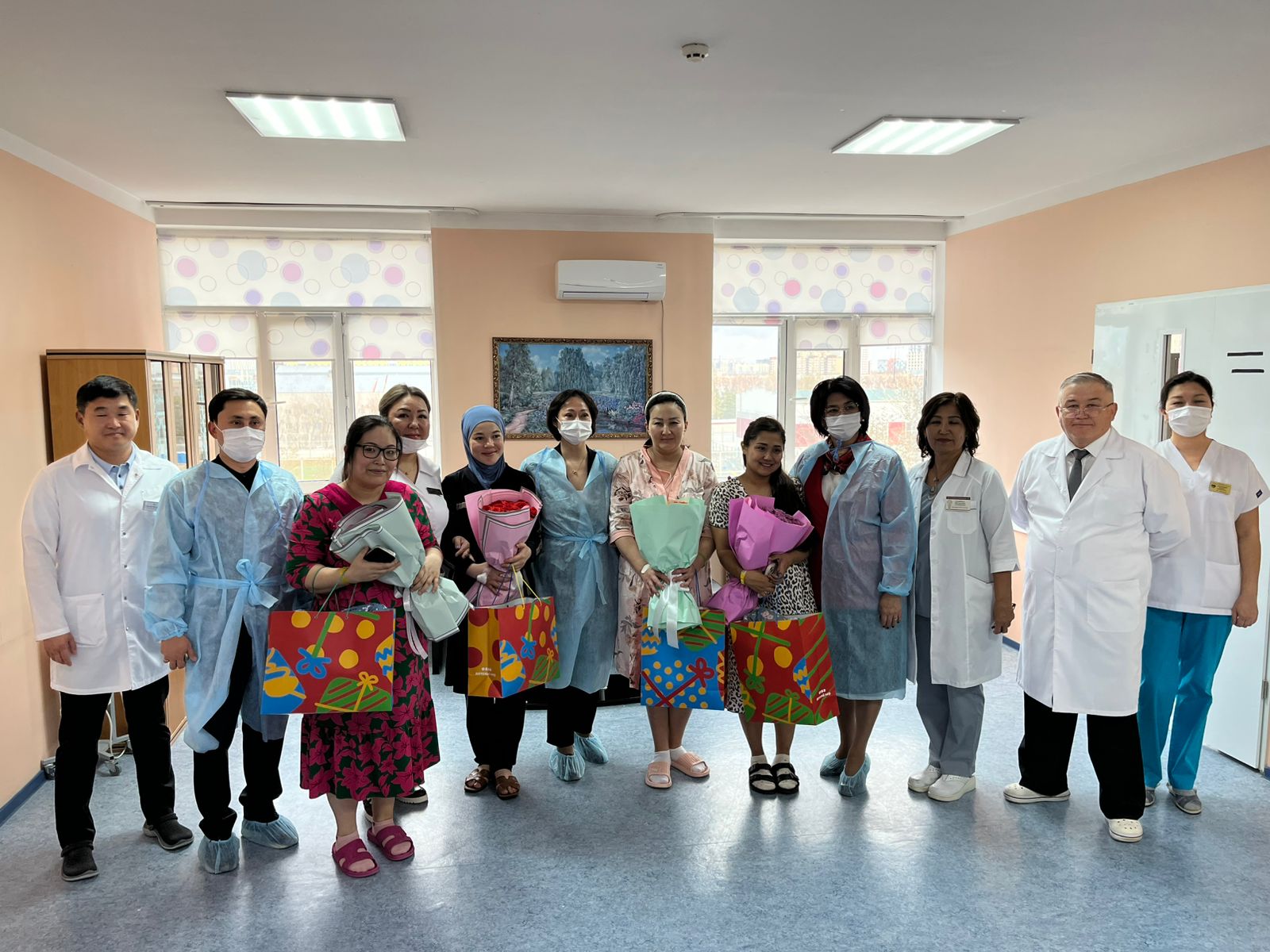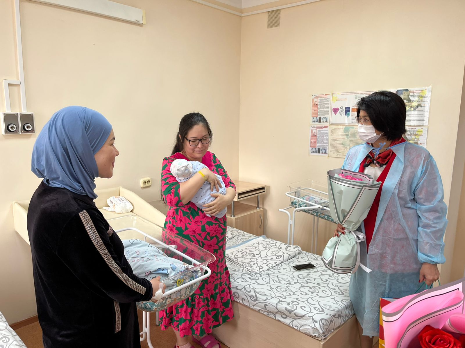 🏥 В Городском перинатальном центре двери жизни открыли 7 малышей. Рожениц поздравить пришли директор Департамента охраны здоровья матери и ребенка Магрипа Ембергенова, руководитель Горздрава Алия Рустемова и заместитель акима района Алматы Мухамедияр Кожекено.